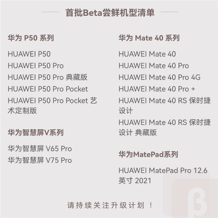 华为新一代操作系统——HarmonyOS 3.0已经正式发布,号称“更流畅,更自由,更安全”。对于大家最关注的自己手机能不能升级,是不是在首批升级名单中的问题,今天有了答案。华为官方公布的鸿蒙OS 3.0首批Beta尝鲜机型清单显示,包括华为P50系列、华为Mate 40系列、华为智慧屏V系列、华为MatePad系列,共计14款机型,与此前曝光的基本一致。